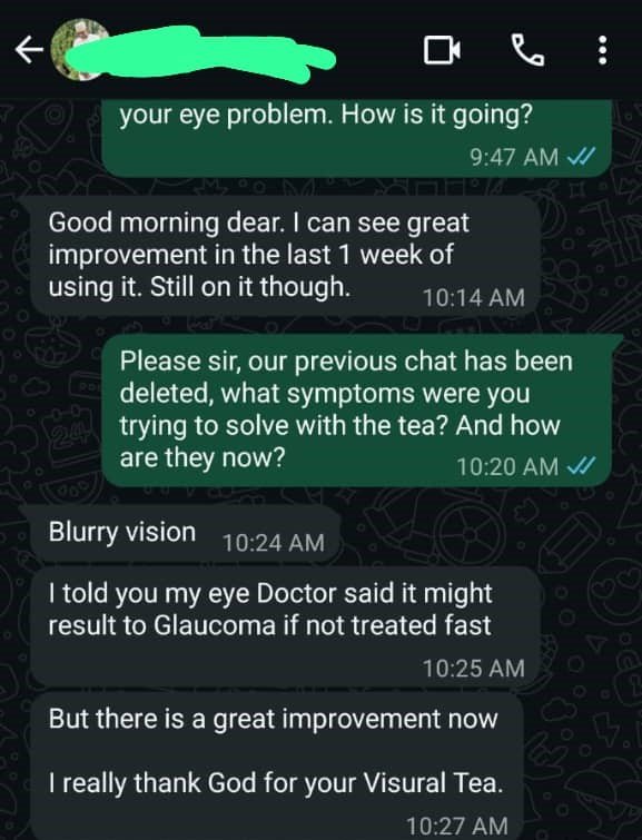 I'm a bus driver for a transport company and when I started having difficulty seeing at night, I knew my life and my work was in trouble. I used this tea for 2 weeks and it is the best decision I have ever made in my life.